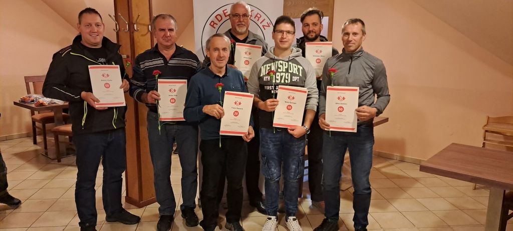 Na prvi decembrski dan smo 26 mirnopeškim krvodajalcem, ki so v preteklem letu darovali kri 10-krat vse do 80-krat, podelili priznanja. Priznanje za 80-krat darovano kri sta prejela Anton Kos in Alojz Drenik, ki pa je bil odsoten.