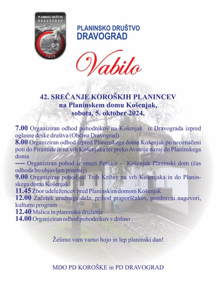 Iz priloženega vabila je razvidno, da je možnost več pohodov, tisti ki se bodo prijavili za prevoz s kombijem se bodo udeležili pohoda po Košenjaku.