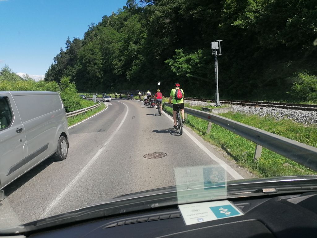 Trasa Klobasarjenja je bila primerna tako za odrasle kolesarje, otroke in voznike električnih priklopov. Pot nas je vodilo po delu kolesarske poti imenovane »Štrekna« - bivša železniška proga iz Pameč, mimo Dravograda čez mejni prehod Vič v Avstrijo, skozi Lavamünd in v smeri proti Pliberku vse do visečega mostu v vasi St. Luzia, nato do mosta v kraju Jauntal in nazaj. Prekolesarili smo 63 km po trasi, ki je izredno lepa, razgibana, zgodovine, kulture, znamenitosti in doživetij polna, ki ni pustila nobenega ravnodušnega. V spremstvu so bila kombinirana vozila, tako za varovanje ali če bi slučajno kdo omagal ali bi se mu izpraznila baterija na priklopu. No dvakrat je bilo treba popraviti oz. zamenjati počeno zračnico. Ob vrnitvi je vse udeležence čakala v baru Monte Carlo dobra hrana tako, da so si vrnili moči in v sproščenem vzdušju uživali.