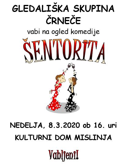 V Kulturni dom Mislinja prihajajo naši prijatelji iz gledališke skupine Črneče s svojo komedijo "ŠENTORITA", ki je avtorsko delo Mire Mori Hribar.