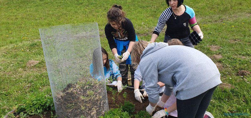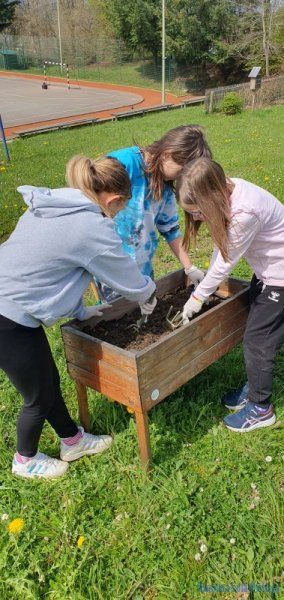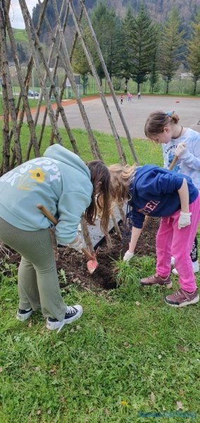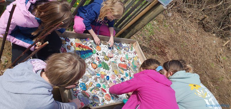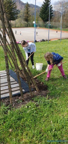 Na našem šolskem vrtu smo ob preteklih sončnih dnevih krepko zavihali rokave. Uredili smo različne grede. Sadike, gnojila in zemljo nam je podarila Koroška kmetijska zadruga – trgovina Mislinja, za kar se jim iskreno zahvaljujemo. Dopolnili smo tudi naš t. i. “Kamniti vrt” z novo zbirko okrašenih kamnov. Na ograji otroškega igrišča so “zaživele” nove žuželke, ki vabijo k obisku. Dokončana je lesena uta, v kateri bodo potekale različne dejavnosti (učne in družabne). Na šolskem vrtu je moč opaziti tudi nekaj lesenih nabiralnikov, ki bodo kmalu uporabljeni v učne namene. Med družabnimi odmori se lahko na vrtu poigrate še z novimi družabnimi igrami. Kot vidite, je naš vrtiček zaživel v novi podobi in vas ob sončnih dnevih vabi v svojo družbo.
