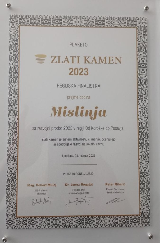 Odpornost, preboj in povezovalnost so bile tri rdeče niti za nagrado Zlati kamen in prav to je tisto, kjer se lahko dokazujemo. Številni projekti v občini so povezani z ohranjanjem naravne dediščine in zdravja prebivalcev, s tem skrbimo za odpornost. Projekte pripravljamo v sodelovanju z drugimi kraji, sistematično vključujemo prebivalce ter tako utrjujemo povezanost znotraj kraja. Mislinja res ni prav med prvimi, a zato izstopa na vseh treh omenjenih področjih.