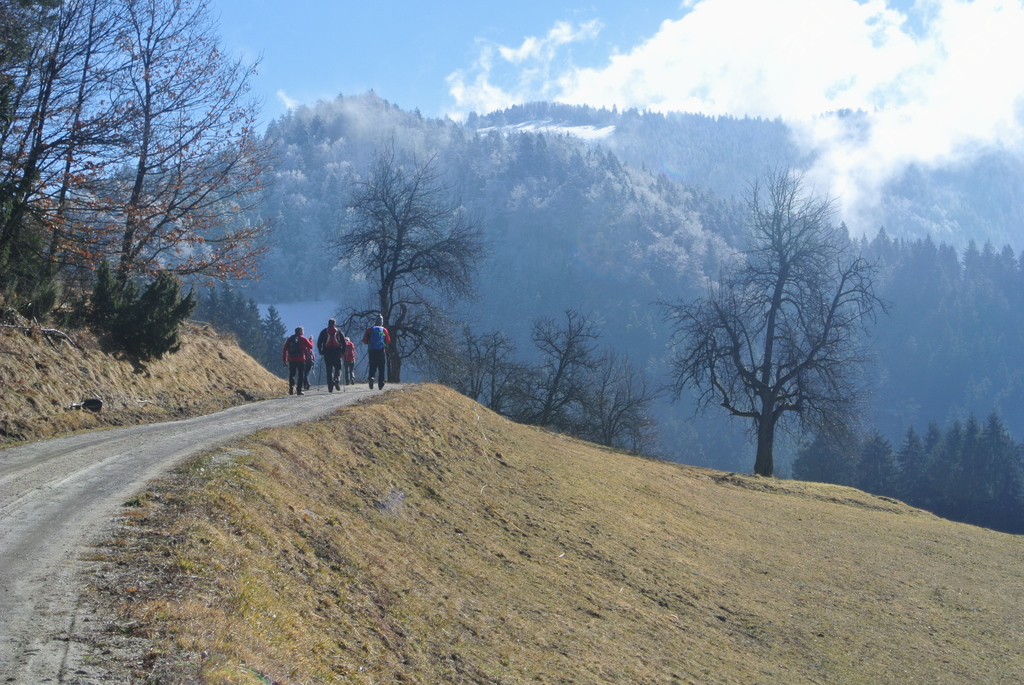 Zjutraj smo se z rednim avtobusom na liniji Gornji Grad – Maribor zapeljali do Dravograda. Od tu pa smo nadaljevali pohod peš. Zjutraj je bilo vreme še delno oblačno, a se je tu in tam že prikazal kakšen sončni žarek, zato tudi ni bilo pretirano mrzlo in je bilo prav prijetno za hojo.