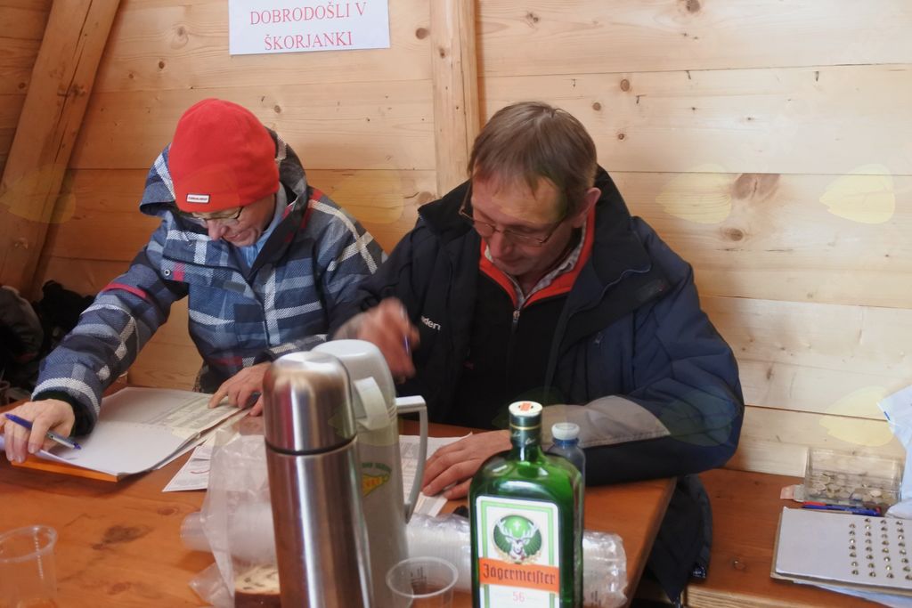 Na vrhu so pohodnike pozdravili člani PD Mislinja, ki so pripravili čaj in tudi kakšen šilček ognjene vode je prav prišel. V škorjanki pa je Joc s pomočnico,žigosal kartončke, vpisoval nove pohodnike, delil značke in se jezil na planince, ki niso imeli izkaznic.