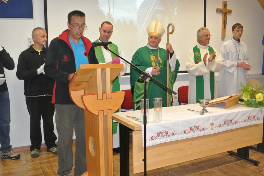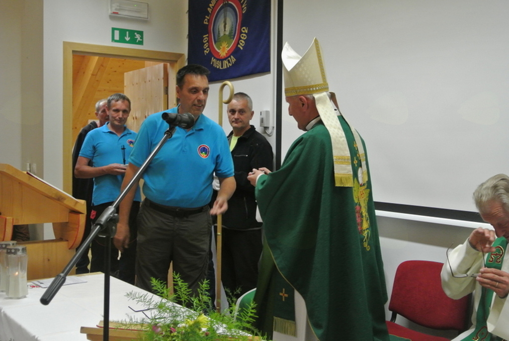 Zaradi slabega vremena smo spremenili lokacijo in prireditev izvedli v veliki dvorani Centra Kope, kjer se je zbralo okoli 150 obiskovalcev. Predsednik društva je uvodoma pozdravil vse navzoče, še posebej pa se je zahvalil za udeležbo predstavniku občine Mislinja, predstavniku Planinske zveze Slovenije in ljubljanskemu metropolitu, nadškofu monsinjorju Stanislavu Zoretu, ki je tudi vodil obred. Obred so popestrili z ubranim petjem člani kvinteta naših Pojočih gornikov.