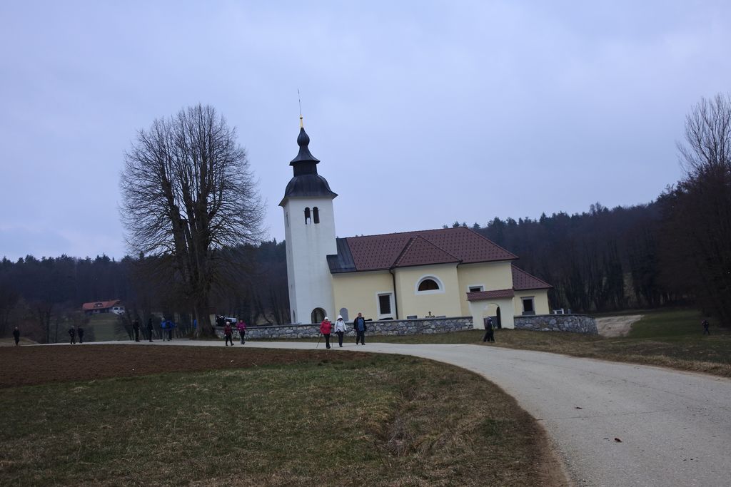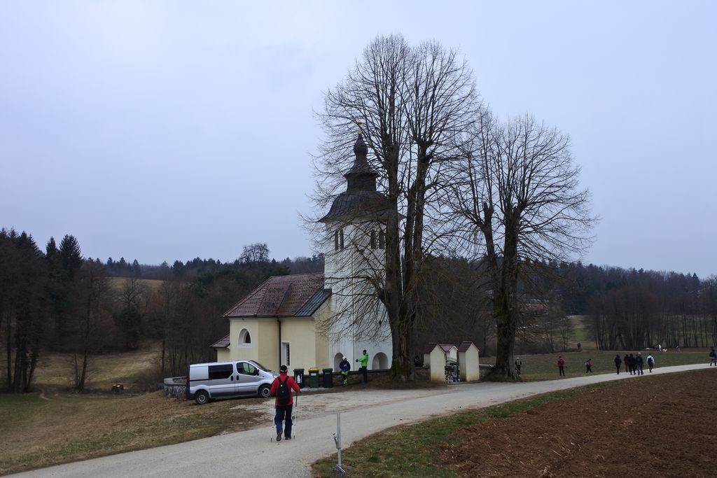 Pot smo nadaljevali po smučišču do najvišje točke pohoda, to je cerkvica sv. Duha. Zaradi oblačnega vremena nismo mogli uživati v razgledih na Kamniško-Savinjske Alpe ali Julijske Alpe s Triglavom v ozadju.