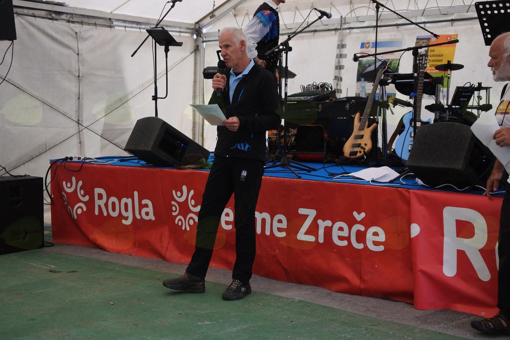 Ob prihodu na Roglo smo se sprehodili po okolici. Na stojnicah smo si privoščili zasluženi prigrizek in pijačo. Malo pred drugo uro smo lahko zaploskali praporščakom planinskih društev. Letos jih je bilo kar 60. Lepo je bilo videti sprevod praporov.