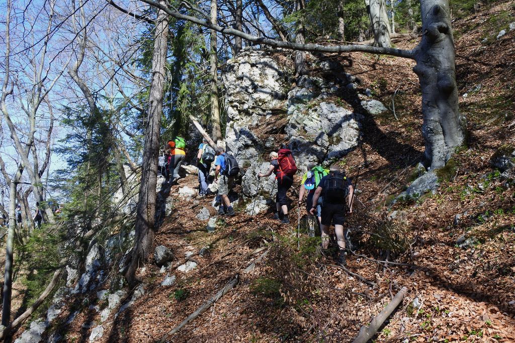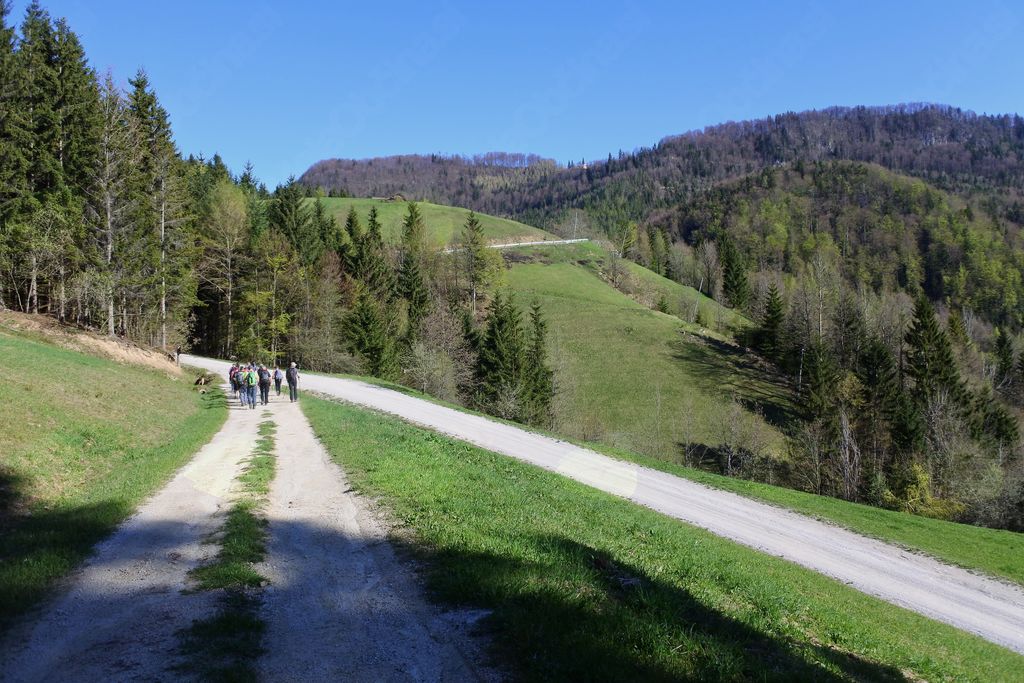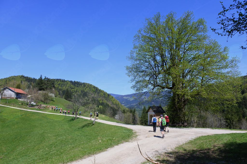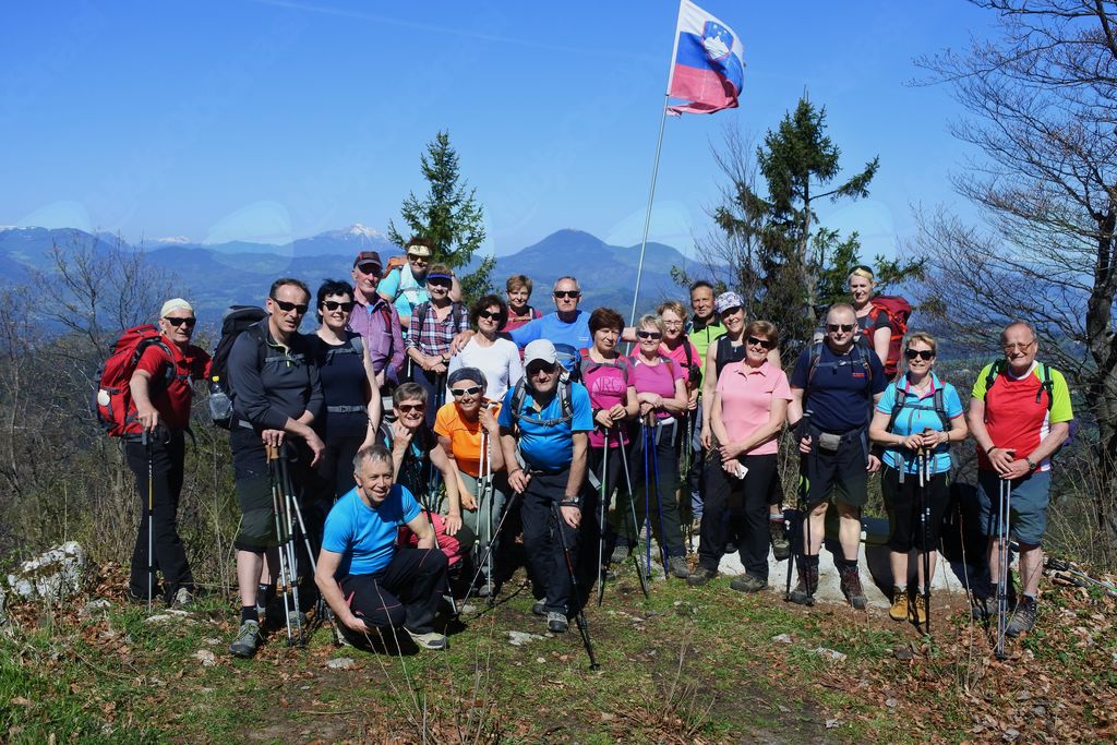Od koče smo nadaljevali pot po strmi gozdni poti na vrh Špika. Na vrhu smo se ustavili in se naužili razgledov po okoliških planinah. Med planinci smo imeli tudi pevce, ki so zapeli par pesmi in še bolj popestrili naš pohod. Naredili smo še eno skupinsko fotografijo in krenili proti cerkvici na Kozjaku.