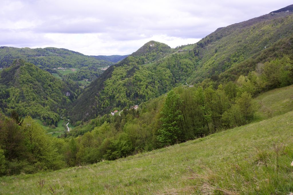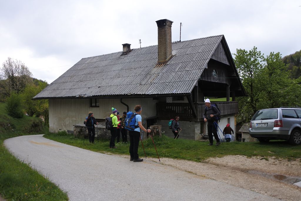 Hitro smo se pripravili na pohod in se po uvodnem pozdravu napotili po v začetku asfaltni cesti, ki pa se je kmalu spremenila v makadamsko. Po dobrih 30 minutah hoje smo prispeli do počitniške hišice, od katere je bil lep razgled na dolino Sopote.