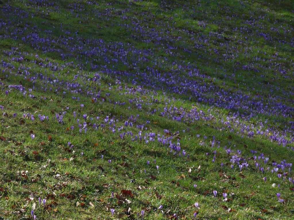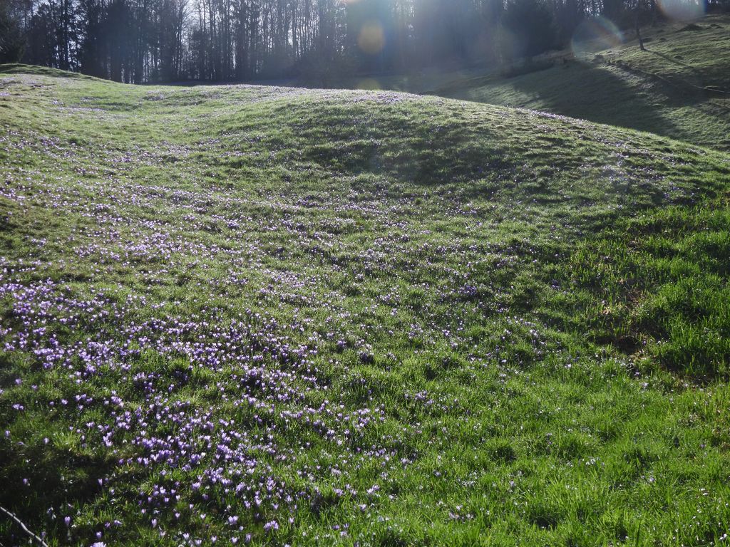 Nekaj časa smo hodili po asfaltni cesti, ki smo jo kmalu zapustili, in se začeli vzpenjati po strmi stezi. Kljub naporu smo uživali, saj smo se lahko odpočili ob pogledih na travnike, ki so žareli v cvetovih žafranov, na drugi strani pa nam je vreme dopustilo razglede na zasnežene gore.