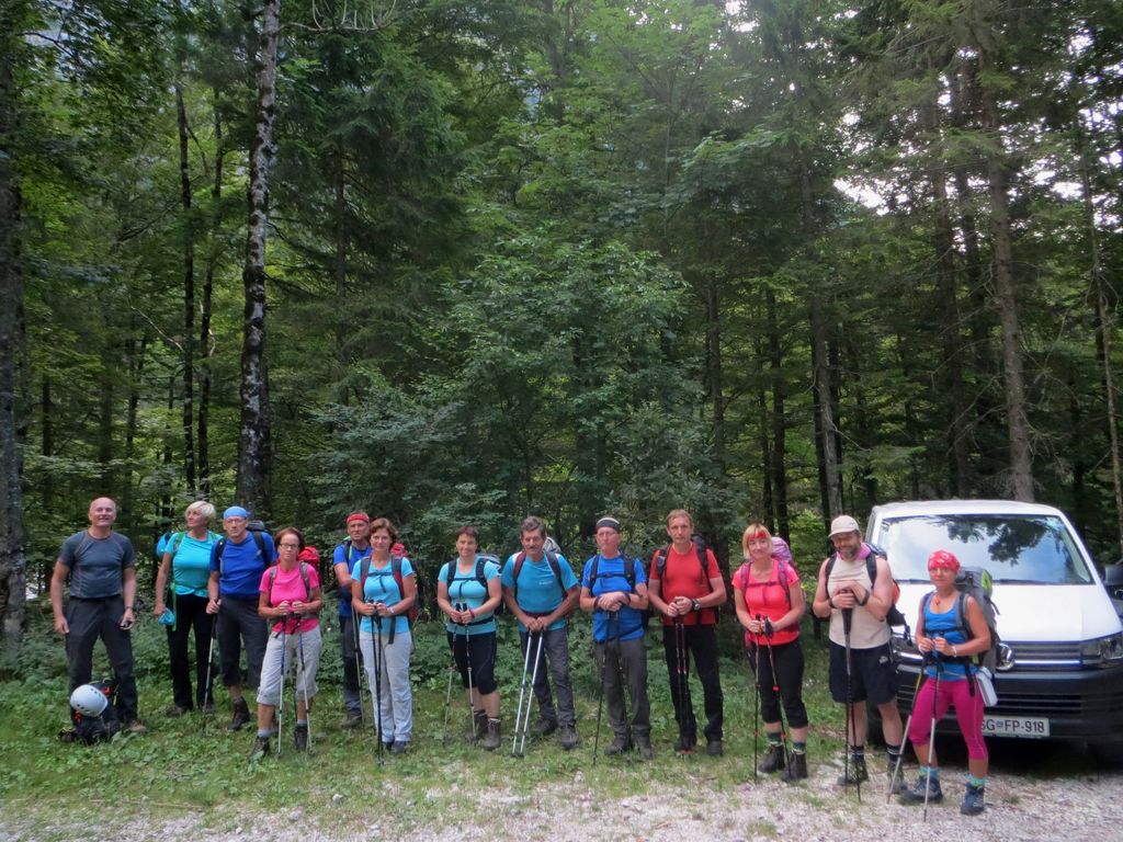 V soboto, dne 22.7.17 se nas je dvanajst planincev odpravilo na Skuto. Zapeljali smo se mimo doma v Kamniški Bistrici še malo višje po gozdni cesti do izhodišča. Tu se nam je pridružil še par iz Velenja in tako nas je na pot krenilo štirinajst.