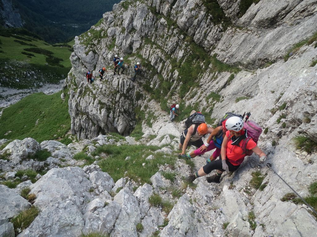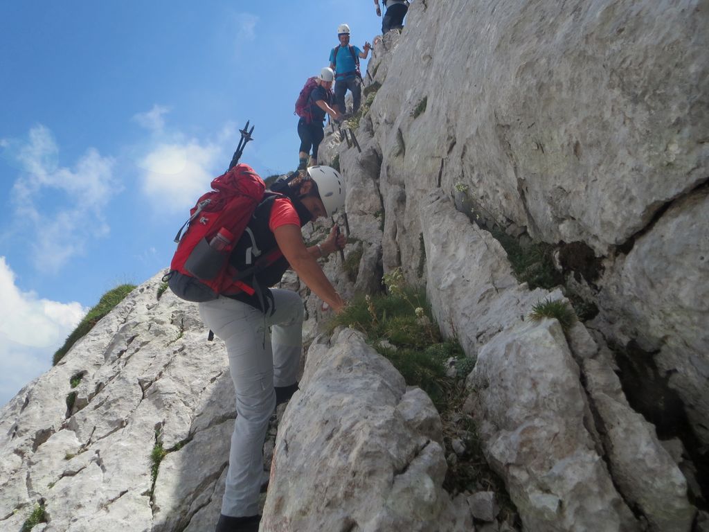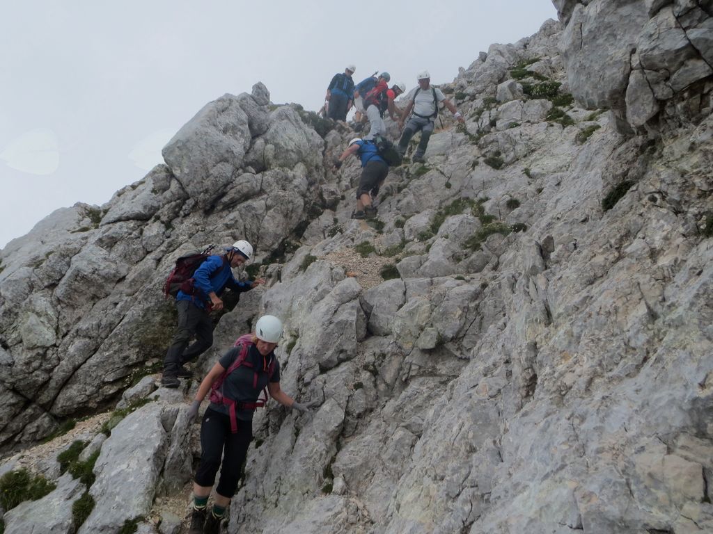 Kmalu so travnike zamenjali kamenje in skale. Strmina ni popuščala, pot pa nas je vodila direktno na Štruco. Preizkusili smo vse naše plezalne veščine in ob vloženih naporih prilezli na naš prvi cilj – Štruco. Odprli so se krasni razgledi, pred nami pa se je risala pot na Skuto. Preko sedla smo se najprej rahlo spustili, nato pa z velikim zanosom krenili navzgor in prispeli na vrh Skute.