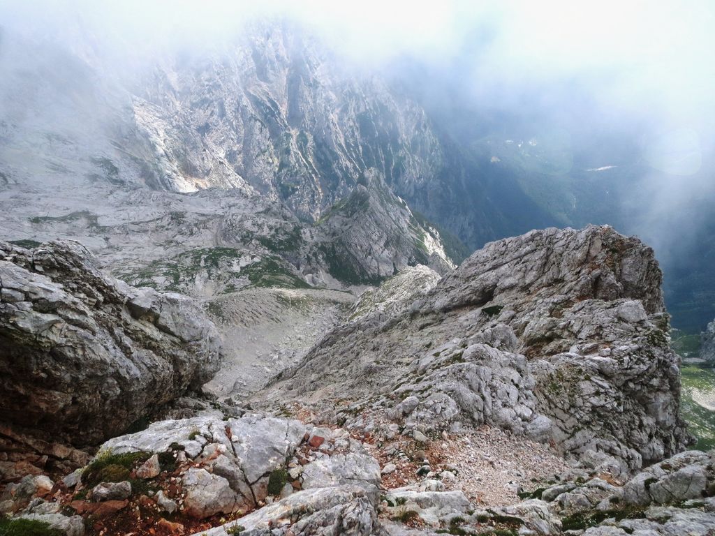 Nekaj časa smo namenili počitku, obveznemu slikanju in občudovanju okoliških gora. Za spust smo izbrali pot čez Žmavčarje (smer Kamniško sedlo). Sestop s Skute je bil strm, na vseh izpostavljenih delih pa varovan s klini in jeklenicami. Po sestopu je sledilo krajše melišče, na poti do bivaka pa smo prečili neizrazit in dokaj položen greben po neoznačeni poti. Počitek smo si privoščili ob modernem bivaku, ki je nemoteče umeščen v naravo in pusti svoj vtis. Od tu smo pot nadaljevali po zelo strmem travnatem pobočju proti dolini. Sprva mehko travnato podlago so kasneje zamenjali kamenje, grušč, pesek in korenine. Strmina ni pojenjala in tudi ob sestopu v gozd smo še vedno pazili na vsak korak. Na koncu smo le dočakali kolovoz, čez nekaj metrov pa tudi naša vozila.