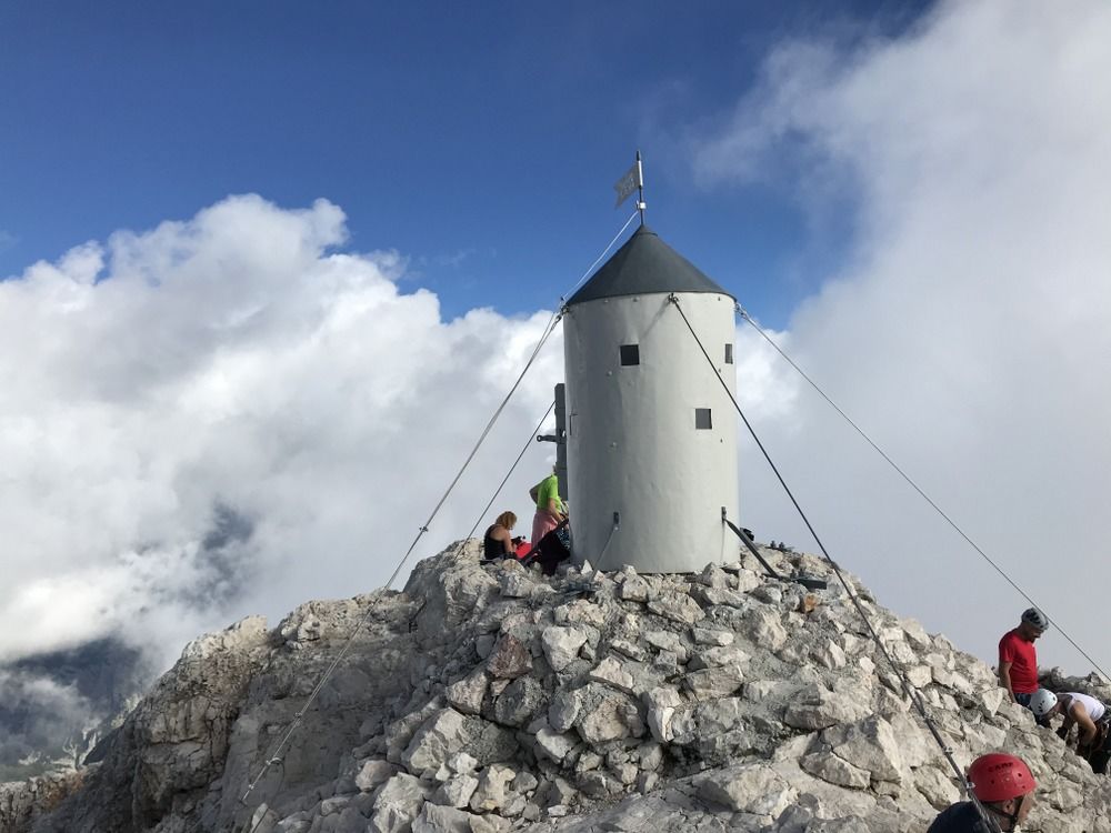 Po počitku in okrepčilu smo se ob 15. uri odpravili proti vrhu. Kolona pohodnikov se je v tem času precej razredčila, tako da pri vzponu nismo imeli težav. Na vrhu je bilo kar nekaj planincev, saj se ob lepem sončnem vremenu nikomur ni mudilo.