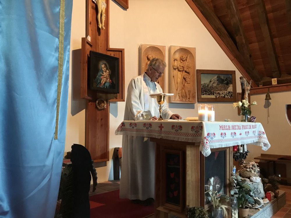 Srečno smo se vrnili na Kredarico. Po krajšem počitku je g. Tine daroval sv. mašo v kapelici Marije Snežne. Maše se je udeležilo tudi nekaj drugih planincev.