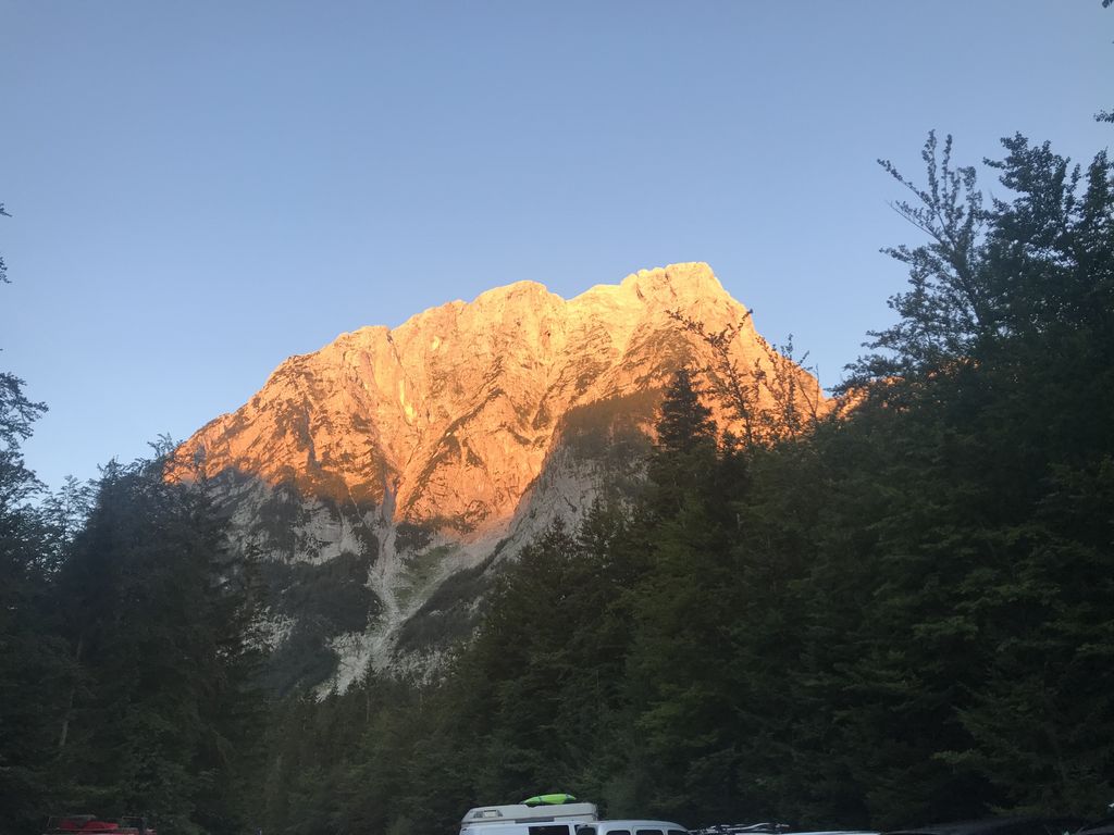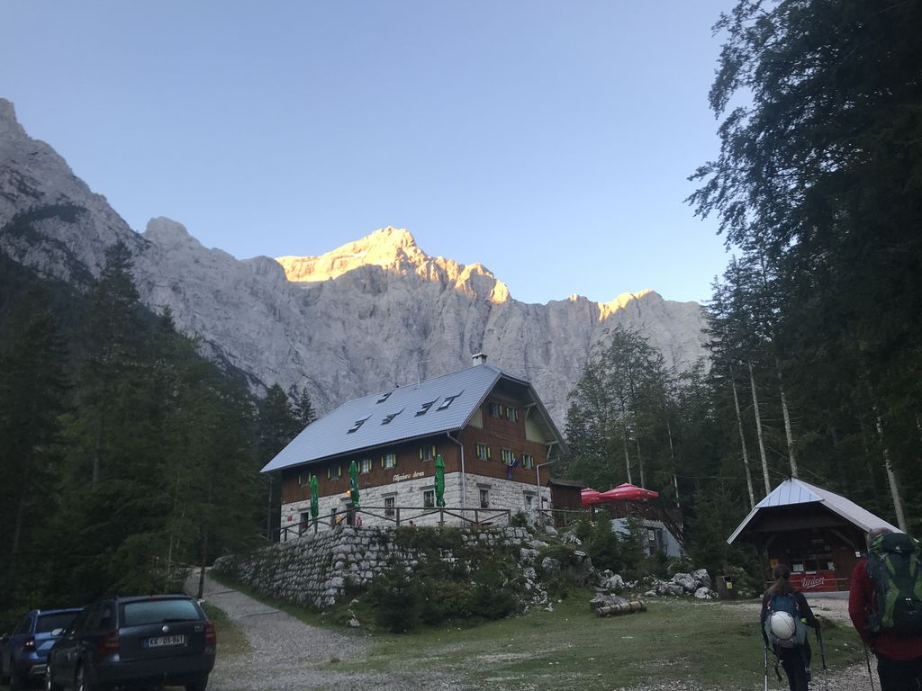 Zbudili smo se v čudovito jasno in toplo jutro. Po zajtrku smo se okrog 8. ure odpravili v dolino Krme. Vreme nam je omogočilo prelep razgled na okoliške vrhove in na Triglav. Srečno smo prispeli v dolino, kjer nas je čakal prevoz in hladno pivo, s katerim nas je počastil prevoznik Miki.