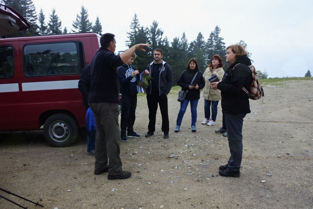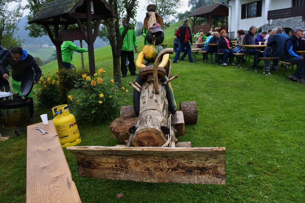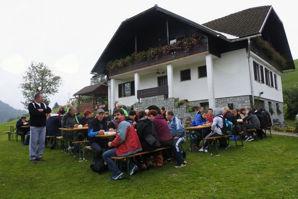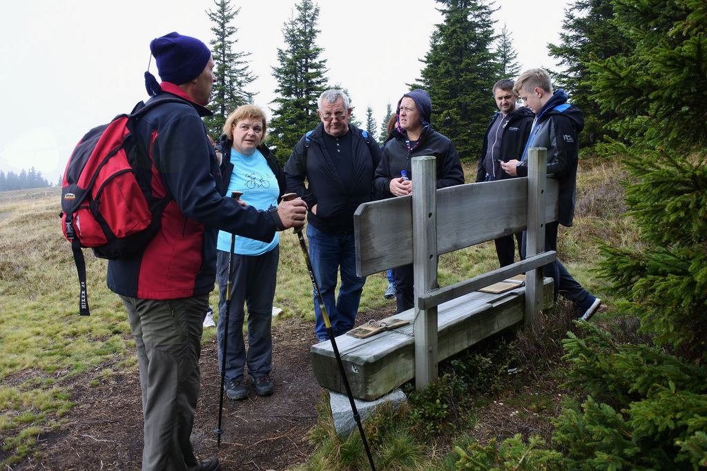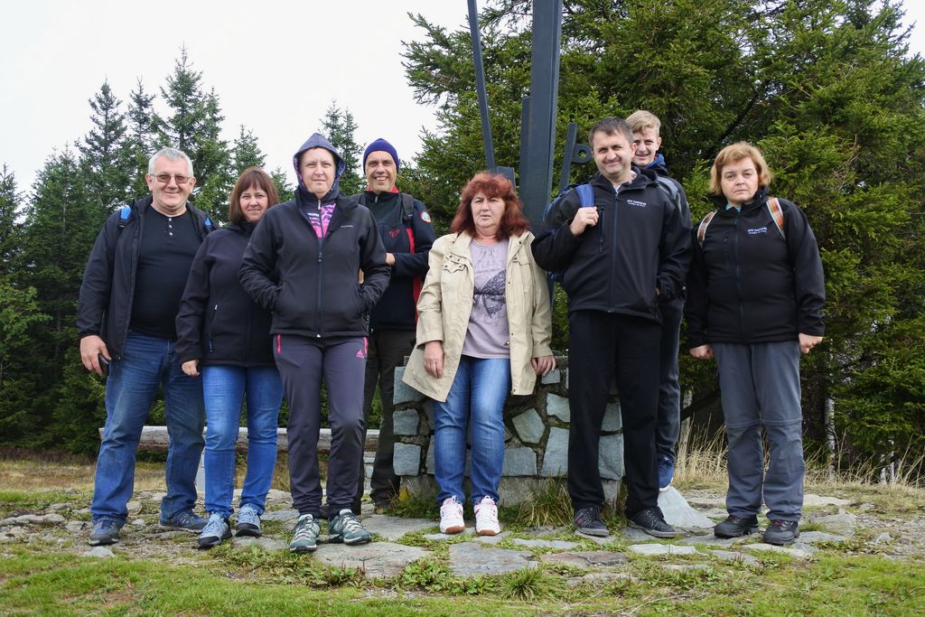 Tokrat smo jih zapeljali do Pungarta, od koder smo peš krenili do Črnega vrha. Ker je to hkrati tudi tematska pohodna pot Kope, so nas na poti spremljale lesene klopi z lesenimi knjigami, ki pripovedujejo zgodbe tega dela Pohorja. Nekaj informacij pa sta jim posredovala tudi Ivan in Peter. Na Črnem vrhu sta jim predstavila zgodovino in pomen znamenja in seveda našo škorjanko. V njej sta jim pripravila obilno pohodniško malico. Po vpisu v pohodno knjigo so krenili nazaj proti Pungartu, ker je bilo močno oblačno, iz meglic pa je začelo rahlo pršeti.