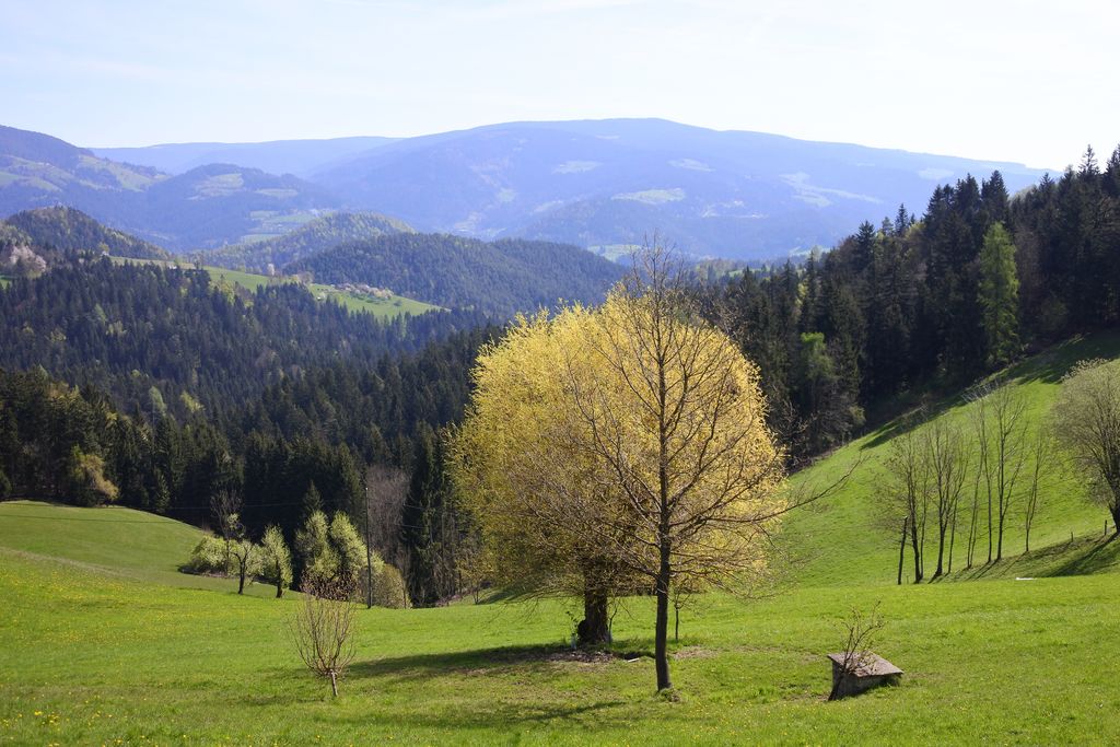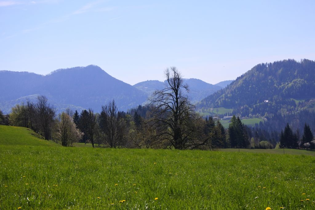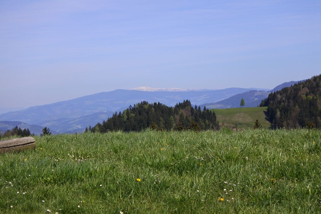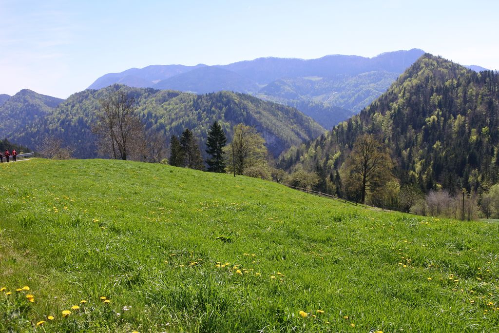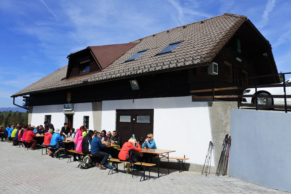Pri lovski koči LD Mislinja smo se lahko okrepčali in uživali na toplem pomladanskem soncu. Užitke pa so polepšali še lepi razgledi po okolici.