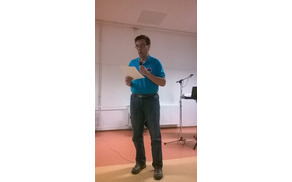 Po otvoritvi in pozdravu so nam zapeli Pojoči gorniki, najprej himno PZS in še dve pesmi, potem pa je gorski ultramaratonec Jani Marn predstavil ultramaraton okoli Mont Blanca.