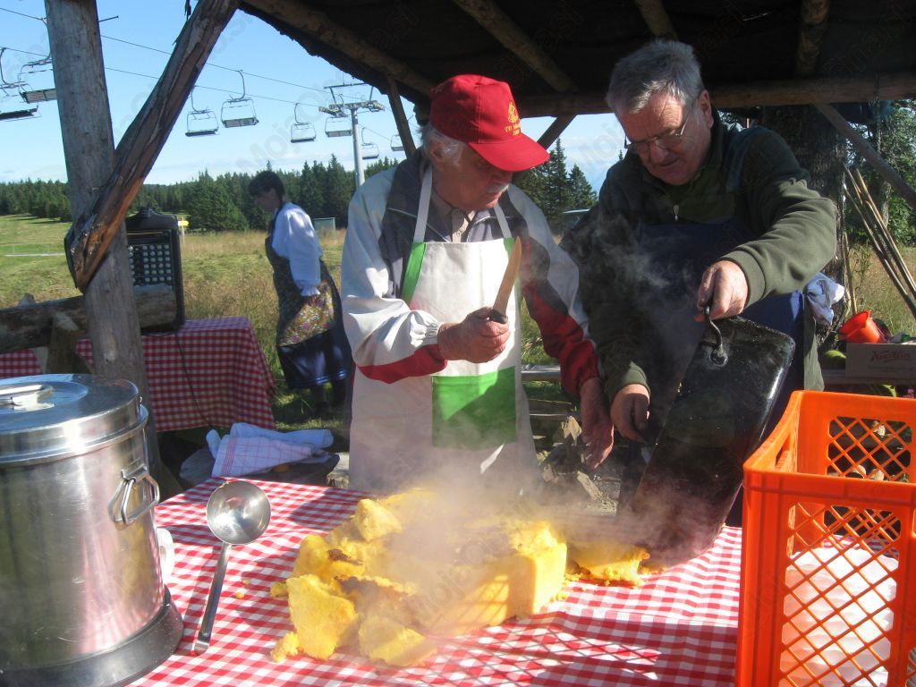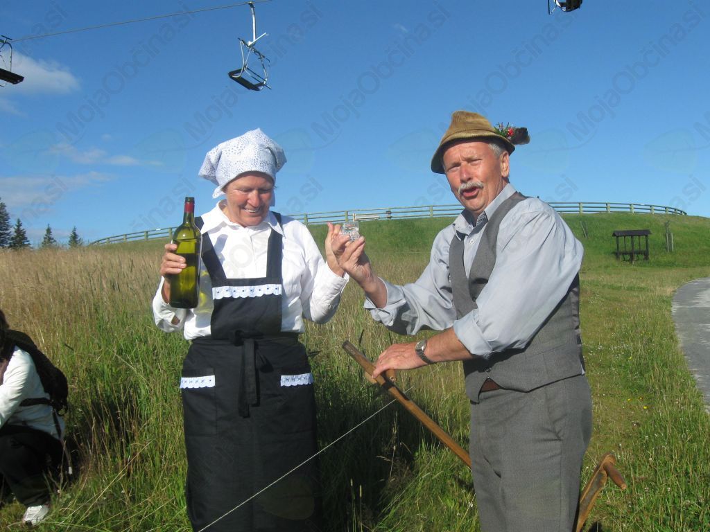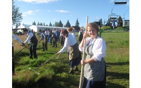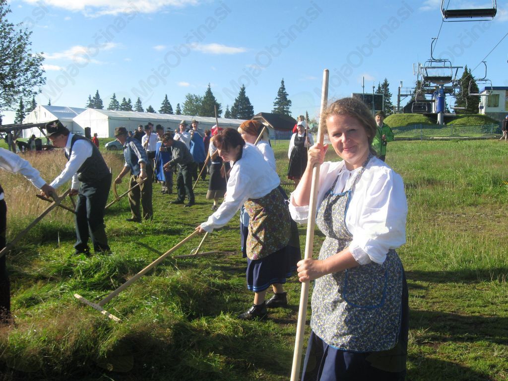 Organizatorji prireditve so poskrbeli za pestrost dogajanja na Rogli. Že ob 8. uri zjutraj so kosci in grabljice prikazali stari način teh kmečkih opravil. Na bližnji stojnici, narejeni iz smrekovega lubja, sta kuharja že pripravljala tradicionalni zajtrk: zabeljeno polento z mlekom.