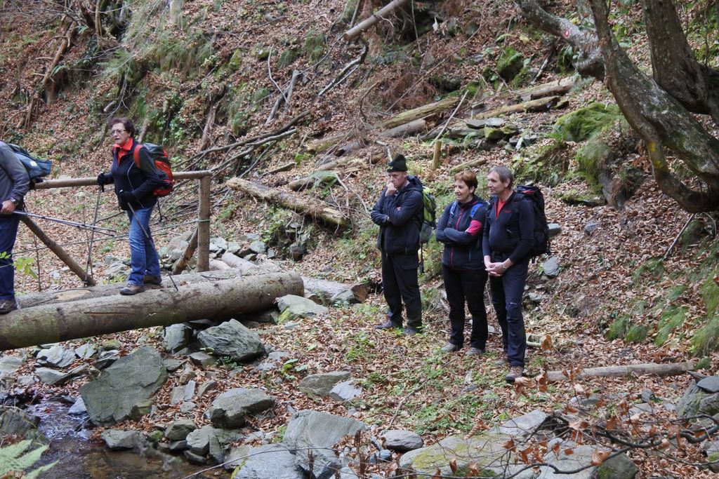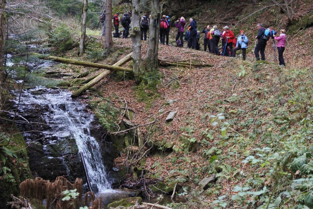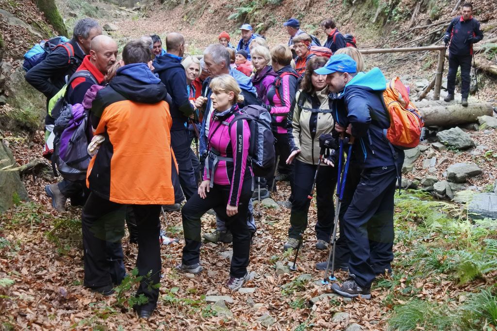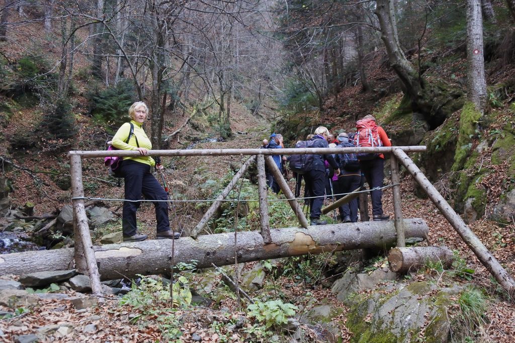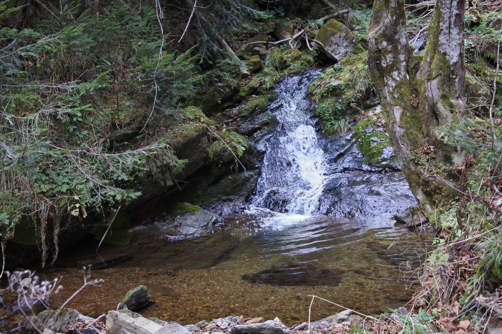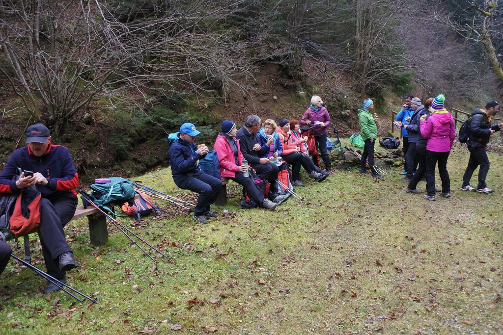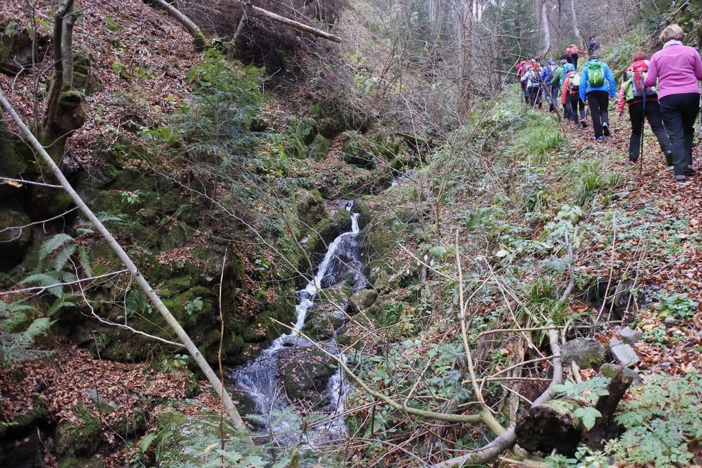 Višje smo prispeli do ostrega levega ovinka, kjer smo zapustili cesto in se začeli vzpenjati po ozki gozdni stezi, ki je speljana tik ob Šturmovem potoku. Po dobri uri hoje ob potoku smo prispeli do Virtičevega mlina, kjer smo se ustavili in okrepčali s hrano in pijačo.