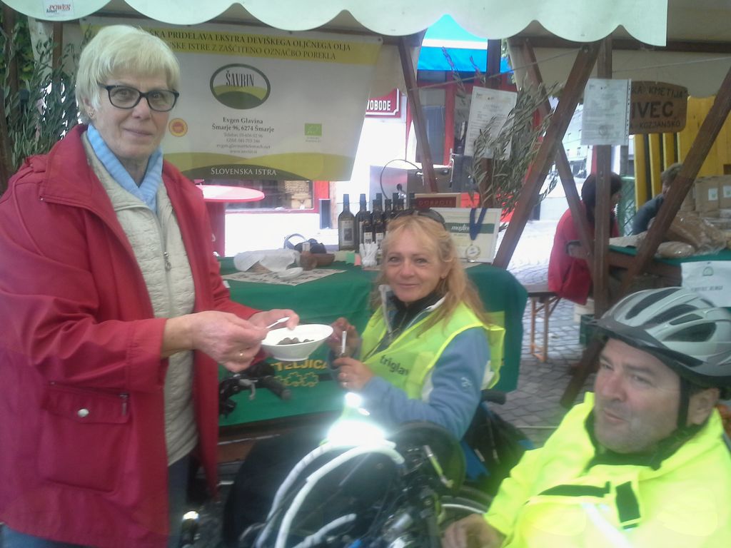 Prireditev smo izvedli »z zamikom«. Spada pa tudi pod prireditve v Evropskem tednu mobilnosti, saj je kvaliteta in dostopnost le te nam invalidom zelo pomembna. Ob nagovoru, navodilih za pot organizatorja tega dogodka in nagovoru evropske poslanke in predsedniške kandidatke ga. Romane Tomc je »pasal« brezplačni čaj ali kavica, še bolj pa pecivo od Dragice. Saj ne vem kdo je bolj priganjal, da naj že krenemo – verjetno boječ se dežja, kakor koli že, vse je nekam vleklo.