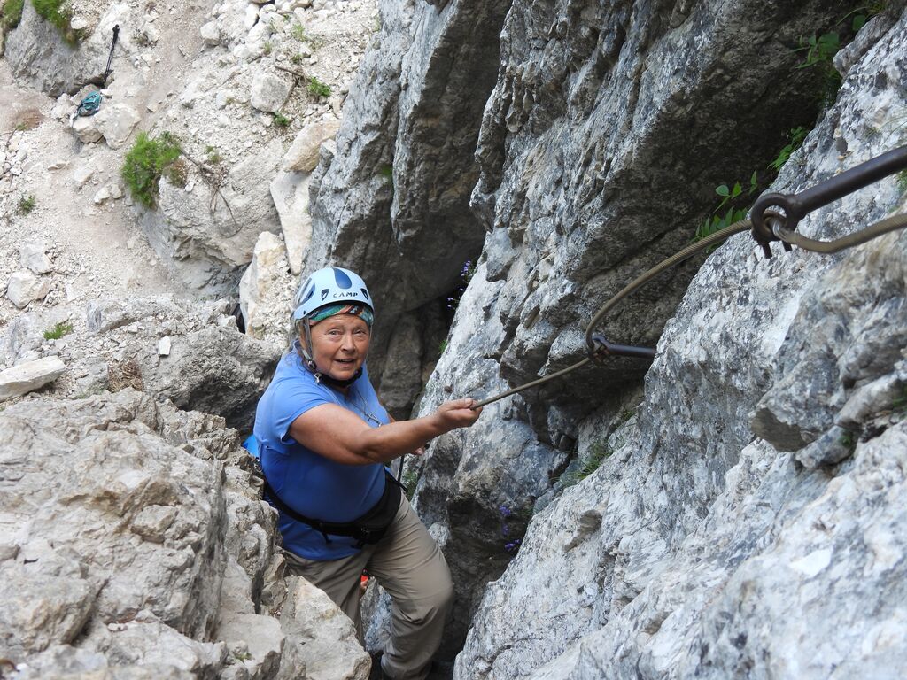 Pri drugem slapu smo se po urejeni planinski poti po stopah, klinih in skalah ob jeklenicah povzpeli do mesta, kjer je bil pogled na mogočen slap res vreden obiska. Zadnji odsek poti s pridihom gibanja v skalah je bil še dodatno atraktiven.