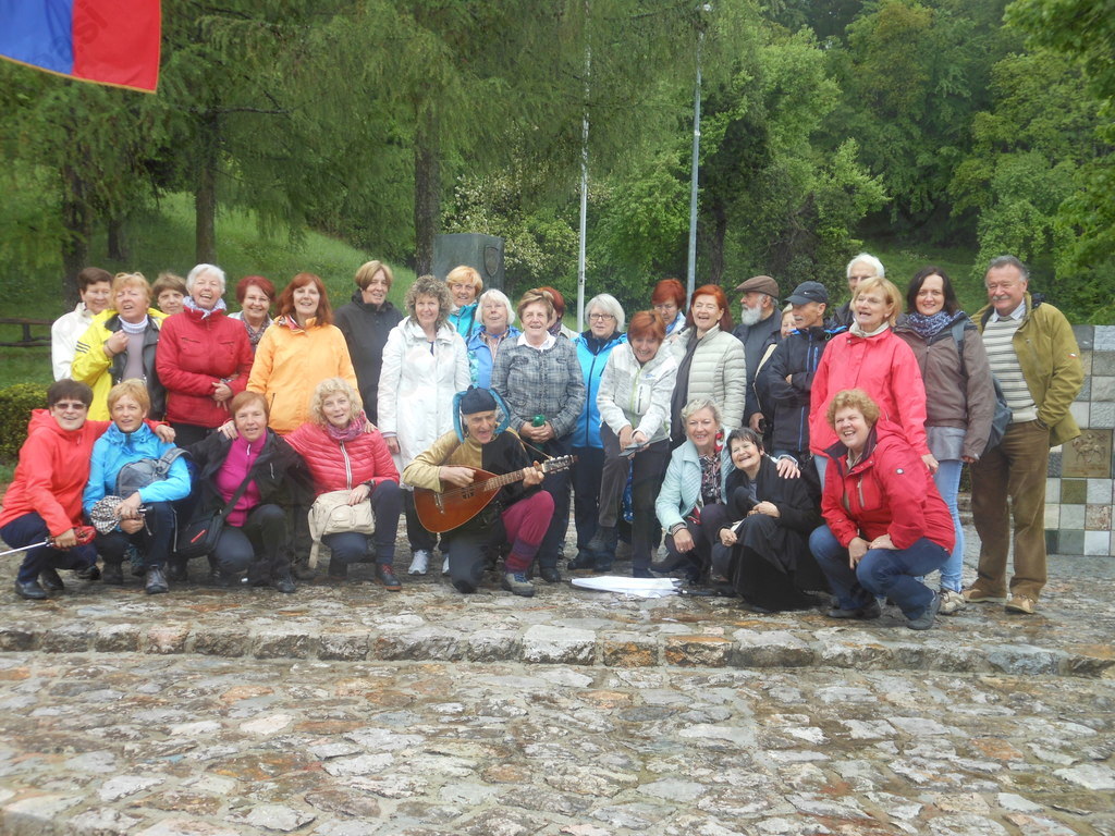 Prvi postanek naše poti je bil kraj Vače pri Litiji, kjer nas je sprejela klepetulja, ga. Anka iz družinskega gledališča Kolenc. Za začetek so nas pogostili s čajem in kavo, za potico iz orehov in rozin pa je poskrbela U3ŽO.