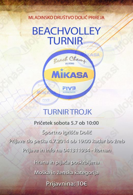 Zaradi lažje organizacije in poteka tekmovanja vas prosimo za predhodno prijavo in sicer prijavite se lahko do žreba, ki bo v petek 4.7.2014 ob 19:00 uri na odbojkarskem igrišču v Doliču.