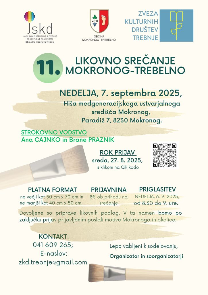 Tradicionalni likovni dogodek se bo dogajal v nedeljo, 7. septembra 2025; letos že 11. leto. Organizatorji so za tokrat izbrali lokacijo kar v Mokronogu. Med 8.30 in 9. uro se bodo ustvarjalci zbrali v DU Mokronog-Trebelno, v Hiši medgeneracijskega ustvarjalnega središča, pridobili napotke za delo do 15. ure in se podali na svoje ustvarjalne kotičke, ki jih ponuja Mokronog.