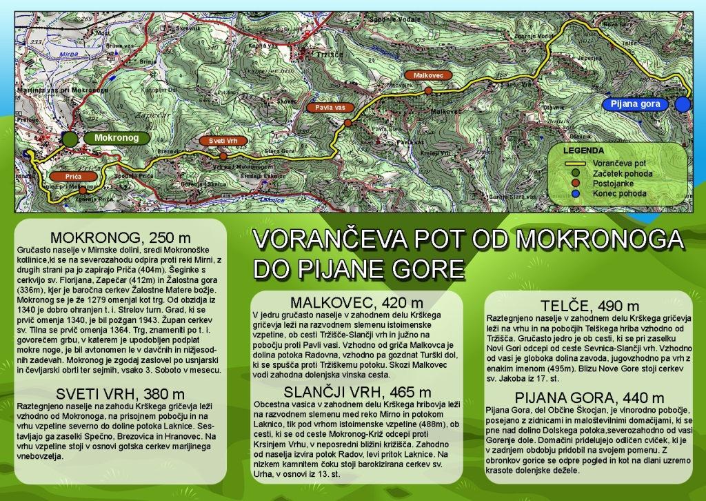 V čudovitem sončnem jesenskem dnevu se nam pridružite na 18. Vorančevi poti od Mokronoga do Pijane gore. Pohod po čudoviti dolenjski pokrajini bo obogaten z lokalno kulinariko in prijetnim druženjem. Dan začnite z obiskom kramarskega sejma v trškem jedru.