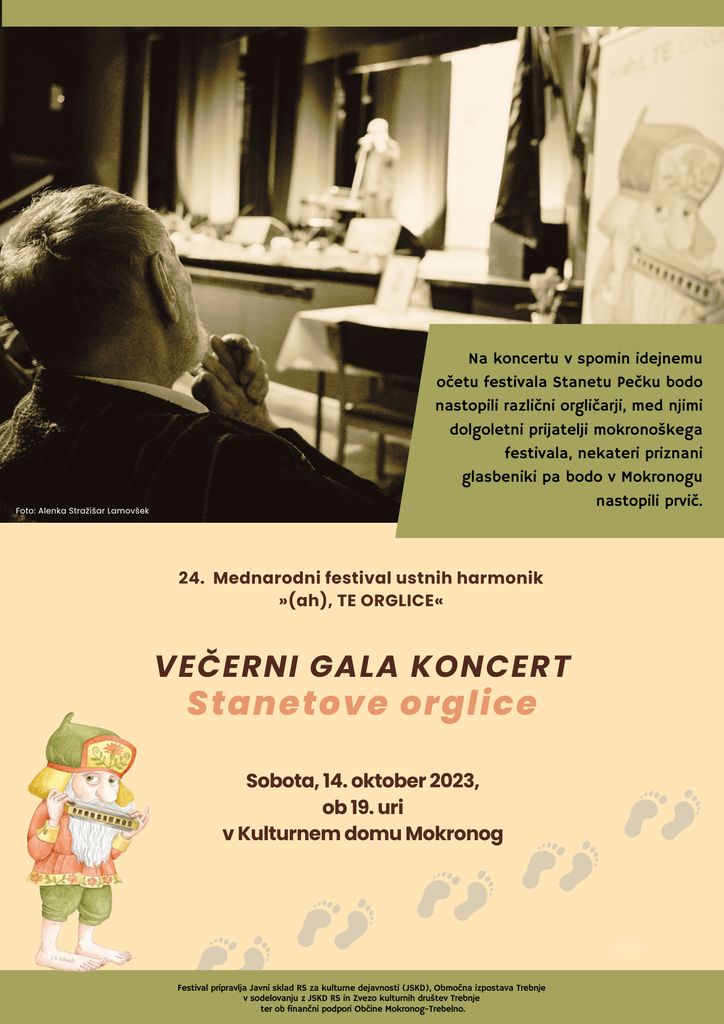 Kot del festivalskega dogajanja bo letos tako organiziran koncert, ki ga bomo posvetili Stanetu Pečku. Program koncerta sestavlja programska komisija. Na koncertu se bodo predstavili različni orgličarji, med njimi dolgoletni prijatelji festivala, nekateri priznani glasbeniki pa bodo v Mokronogu nastopili prvič.