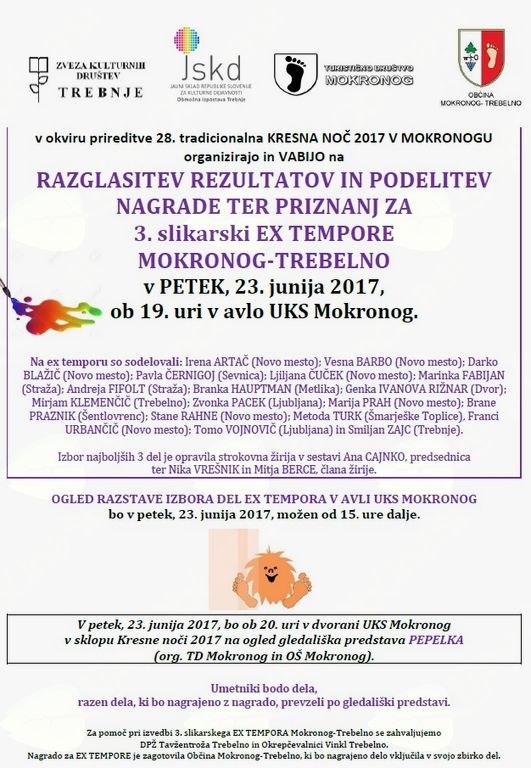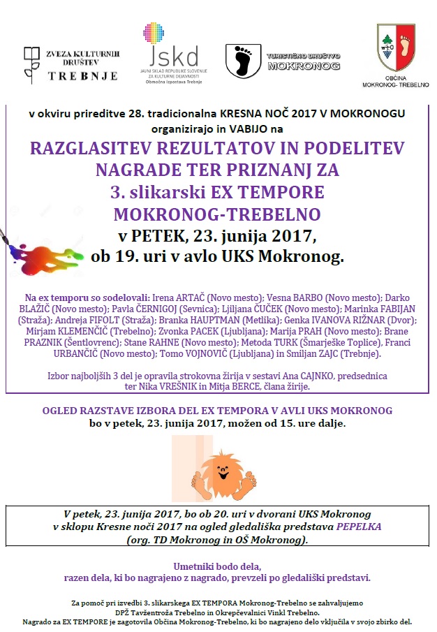 Za pomoč pri izvedbi 3. slikarskega EX TEMPORA Mokronog-Trebelno se zahvaljujemo