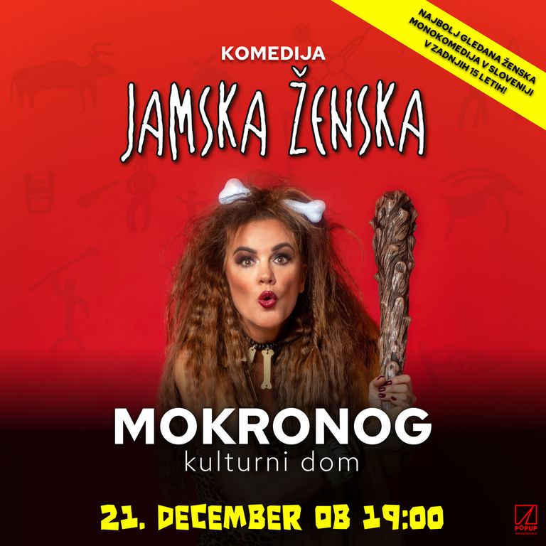Po izjemnem uspehu predstave Jamski človek zdaj na slovenskih odrih navdušuje še komedija Jamska ženska, avtorice Emme Peirson. V glavni vlogi blesti Rebeka Dremelj, ki s svojo predstavo osvaja občinstvo. Pod režijsko taktirko Ranka Babića, ki ga poznamo po hit komedijah Moška copata in Kriza srednjih let, predstava še naprej razveseljuje gledalce po vsej Sloveniji.