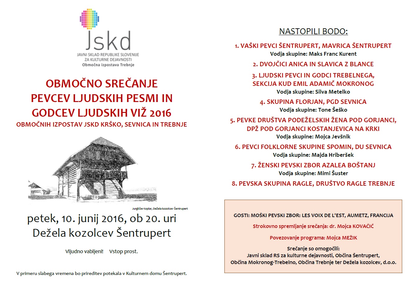 Na srečanju se bodo predstavili tudi Ljudski pevci in godci Trebelnega, ki delujejo v okviru KUD Emil Adamič Mokronog.