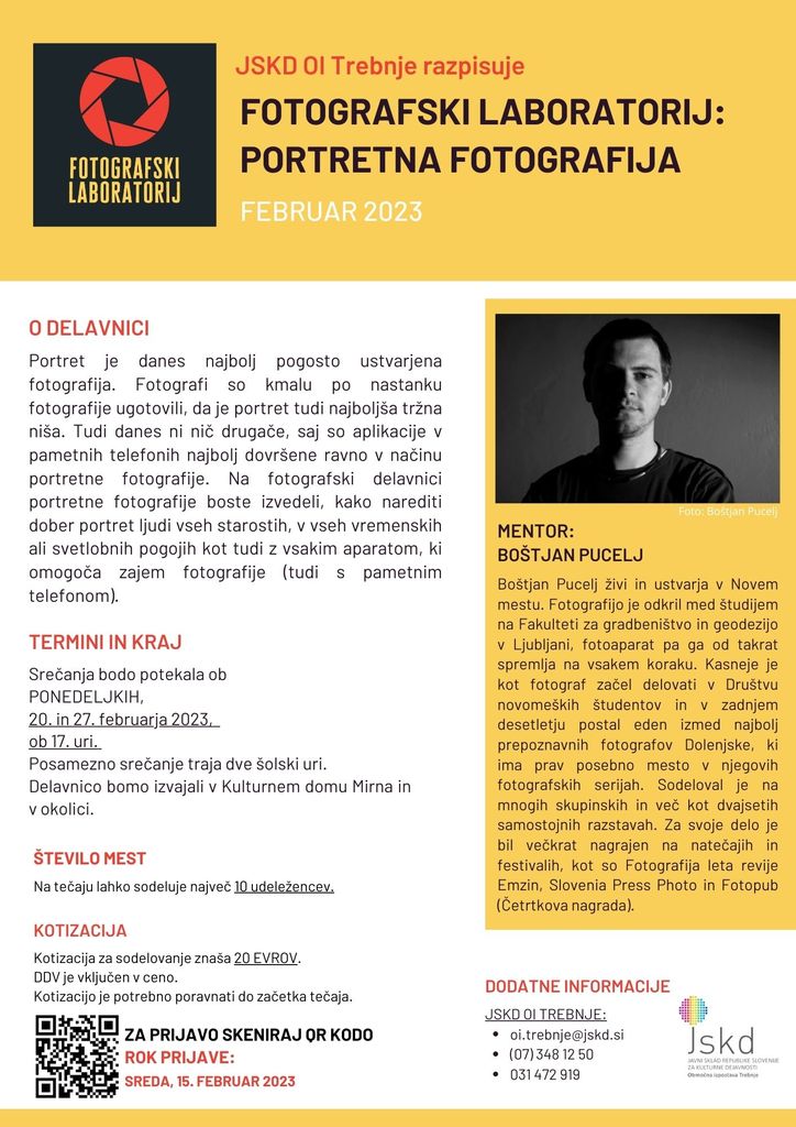 Ljubiteljske fotografe ponovno vabimo na izobraževanje - tokrat v ospredju Portretna fotografija