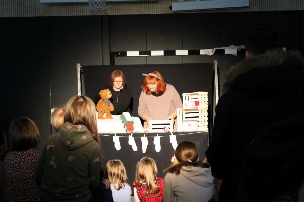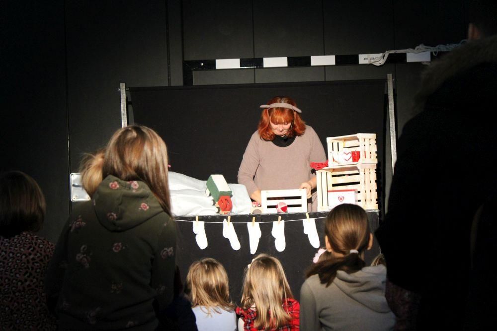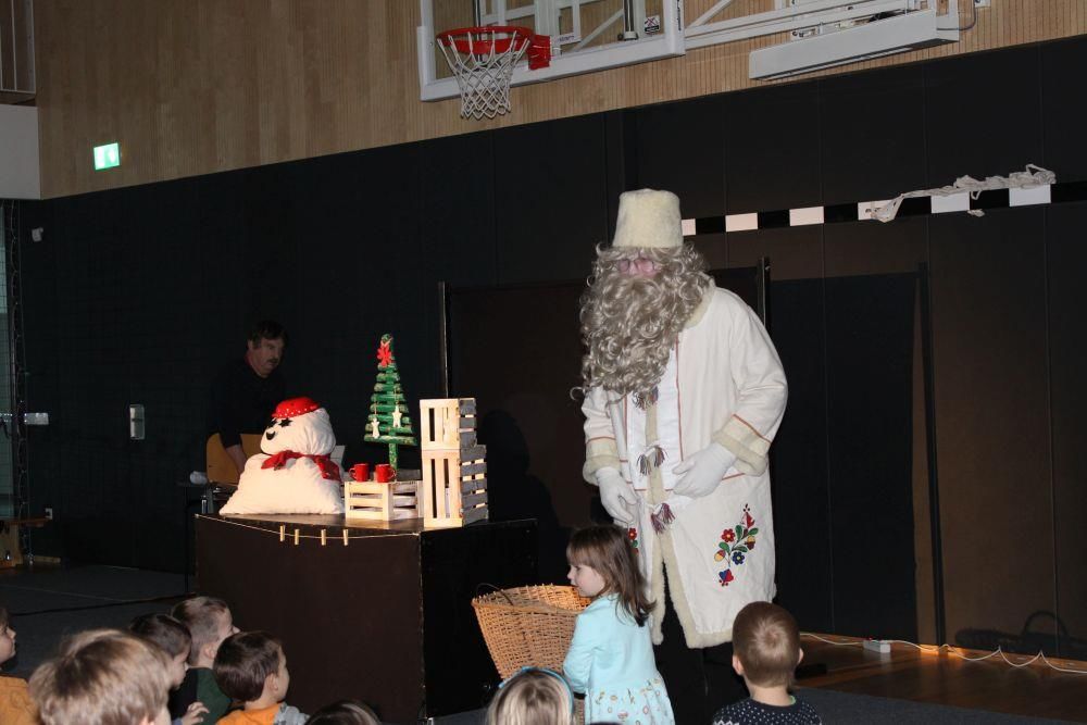 Da je bilo čakanje na dedka Mraza zabavno, sta poskrbela Poldek in mama Medvedka v lutkovni predstavi Kadar v hiši sneži. V njej sta se predstavili domači lutkarici Polonca Bartolj in Bojana Gregorčič iz Lutkovne skupine Mokre tačke (KUD Emil Adamič). Nato je malčke obiskal še dedek Mraz, ki je prinesel darila. Najprej so se ga razveselili na Trebelnem, nato pa še v Mokronogu.