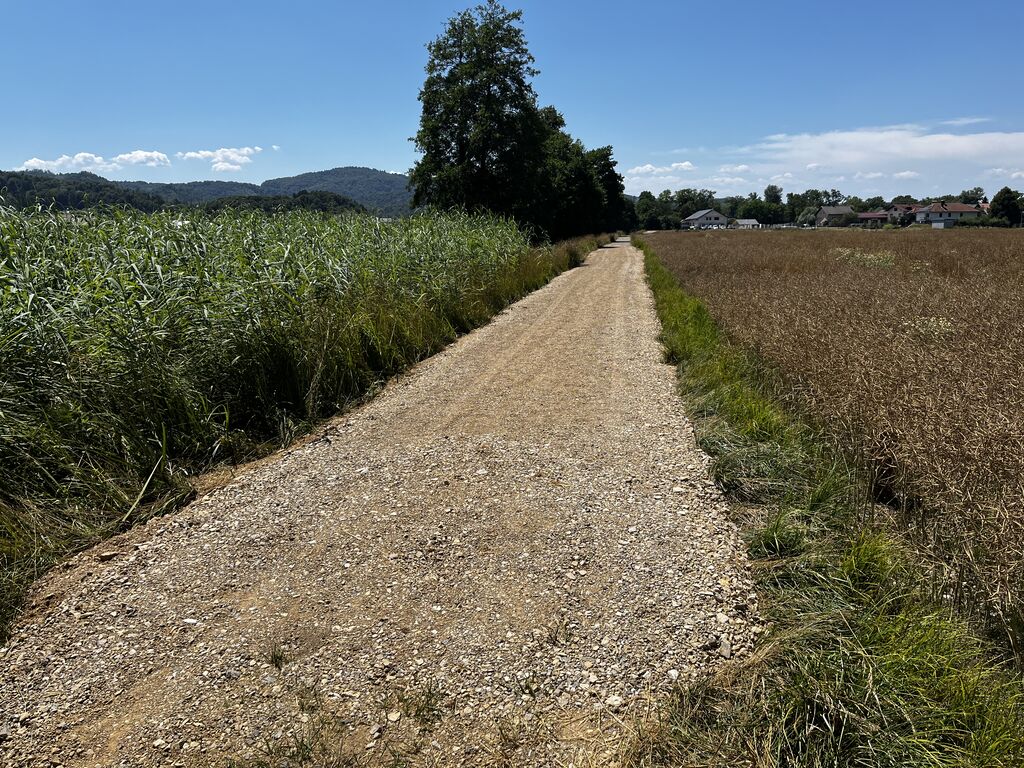 Opis: Urejena je bila dodatna razdalja poti s podlago, primerno za pešce in kolesarje, ter postavljena nova urbana oprema (klopi in koši).