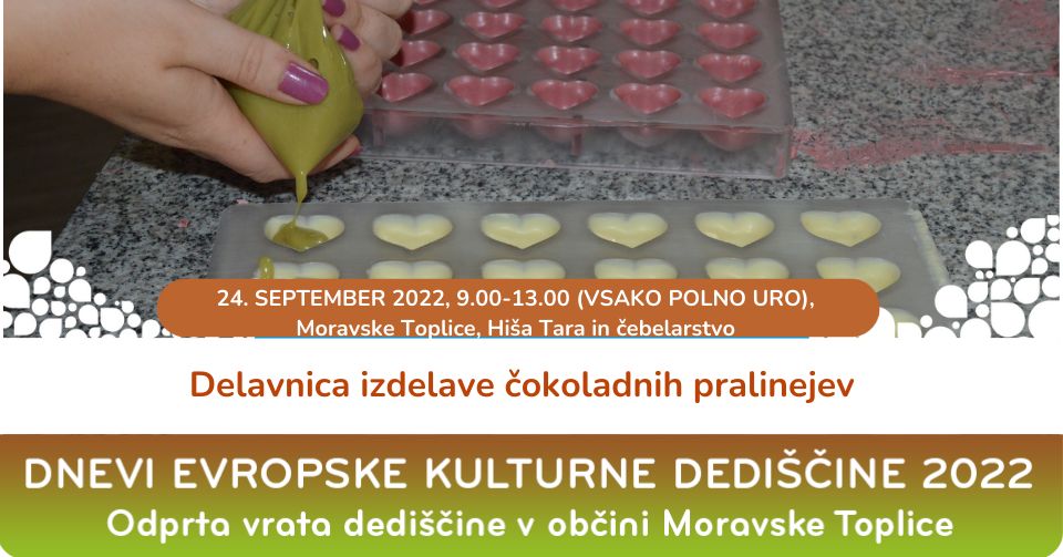 Na predstavitev čebelarskih zgodb in delavnico izdelave čokoladnih pralinejev vabi Hiša Tara in čebelarstvo iz Moravskih Toplic. Čokoladne delavnice se na njihovi domačiji v Moravskih Toplicah lahko udeležite v soboto, 24. septembra, vsako polno uro med 9. in 13. uro.