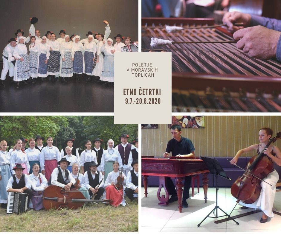 Etno četrtki so v okviru Poletja v Moravskih Toplicah na sporedu ob četrtkih v juliju in avgustu, od 16. julija naprej. Etno program sledi od 19.30 naprej na zelenici v središču Moravskih Toplic.