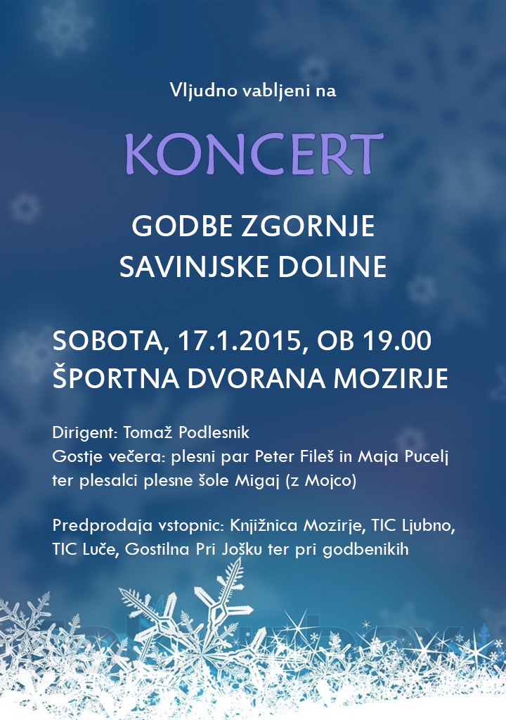 Koncert bo potekal v soboto, 17. 1. 2015 ob 19:00 v mozirski športni dvorani.