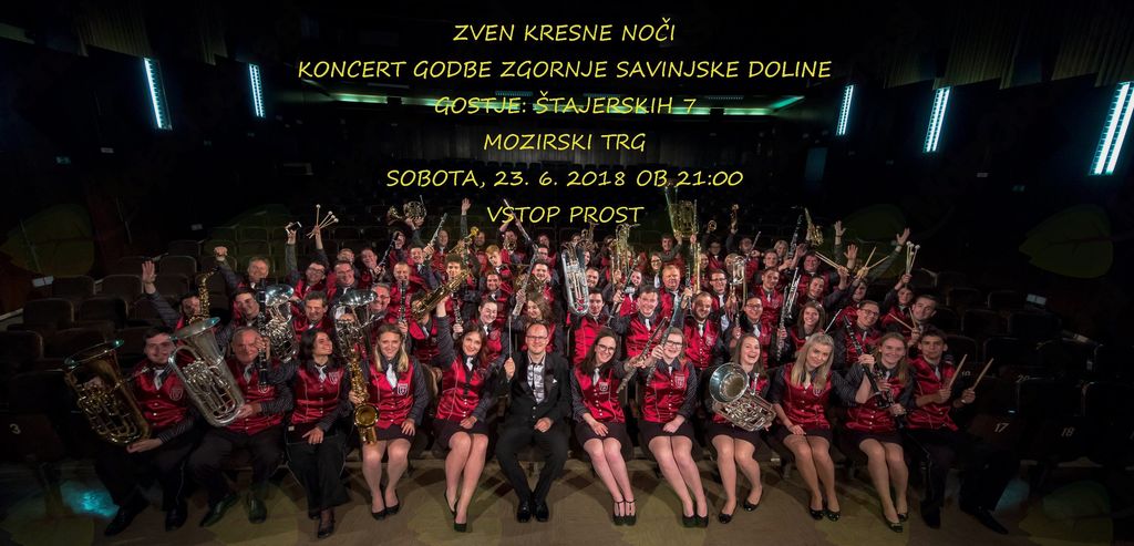 Koncert Godbe Zgornje Savinjske doline v poletnem objemu mozirskega trga.