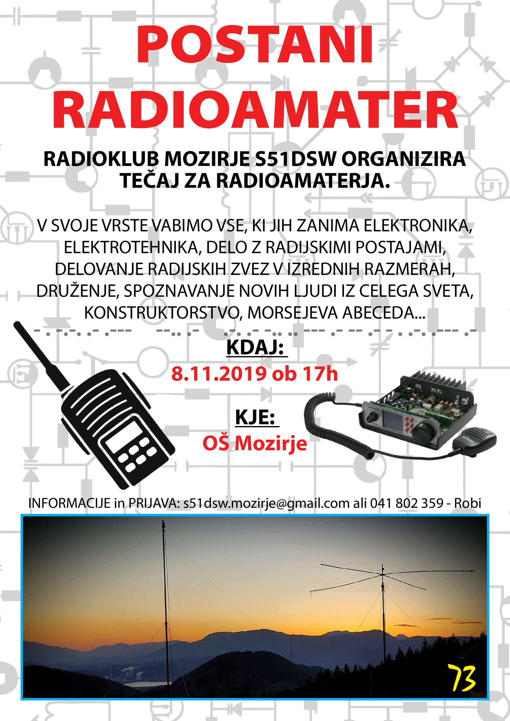 Zaradi tega upravni odbor radiokluba Mozirje S51DSW s svojimi predavatelji organizira tečaj za radioamaterje.
