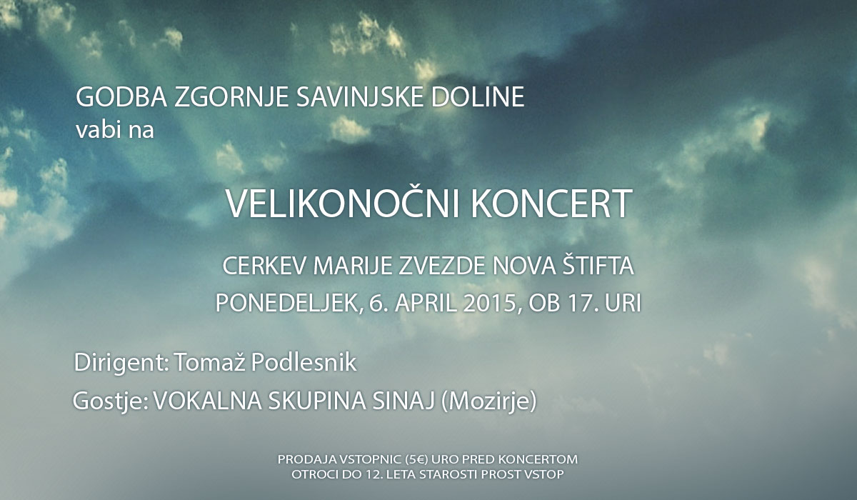 Prijeten program, vokalna skupina Sinaj iz Mozirja kot gostje Godbe ter odlična akustika, ki jo nudi cerkev, so razlogi, da velikonočno praznovanje zaključite z obiskom našega koncerta.