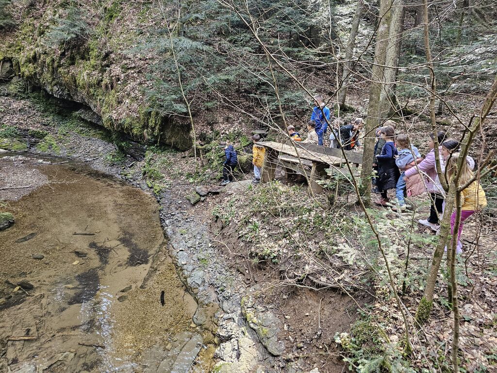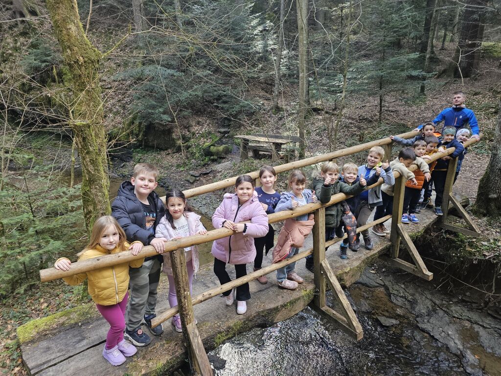 Naši mali raziskovalci so imeli oči na pecljih: odkrili smo veveričje domovanje (lastnik žal ni bil doma – verjetno na malici), občudovali žabji mrest, ki je obetal pravo pomladno koncertno sezono, ter prisluhnili pticam, ki so nas razveselile kot prave znanilke pomladi. Seveda pa ni šlo brez cvetličnega sprejema – zvončki in trobentice so nas pozdravili kot mali naravni orkester, ki igra najlepšo melodijo: “Pomlad prihaja!”