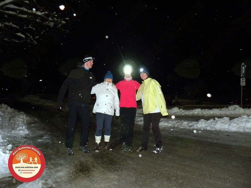 Čeprav je čez noč zapadlo približno 30 cm snega, nismo bili prvi na progi, tako da je okoli 30 tekačev tudi odteklo 5 in 10 km progo, družine pa so uživale v skupnem pohodu na 5 km. Poseben čar je dala snegu še noč, saj je bilo potrebno imeti s sabo naglavno luč ali kakšno drugo svetilo.