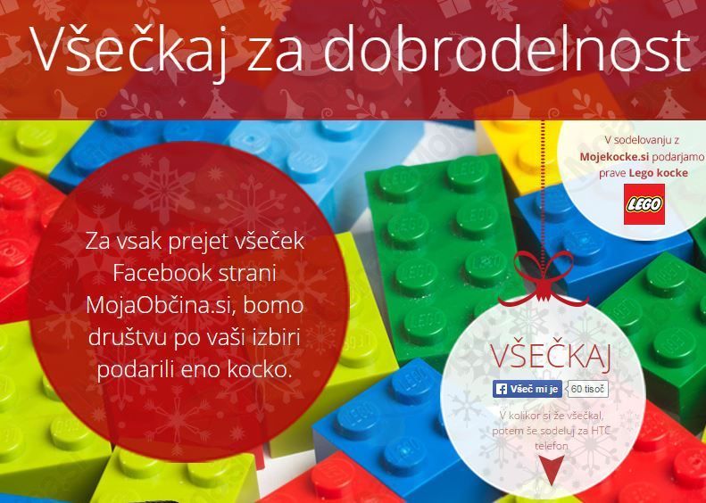 Za vsak prejet všeček Facebook strani MojaObčina.si, bomo društvu po vaši izbiri podarili eno LEGO kocko.