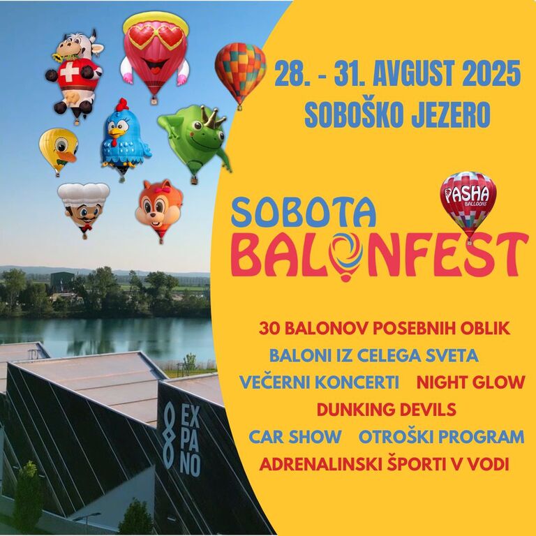Od 28. do 31. avgusta bo nebo nad Soboškim jezerom preplavljeno z več kot 30 baloni posebnih oblik – od pravljičnih likov do planetov, živali in najrazličnejših oblik.
