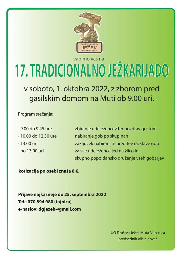 Vabimo vas na 17. tradicionalno Ježkarijado, ki bo v soboto, 1. oktobra 2022, z zborom pred gasilskim domom na Muti ob 9. uri.