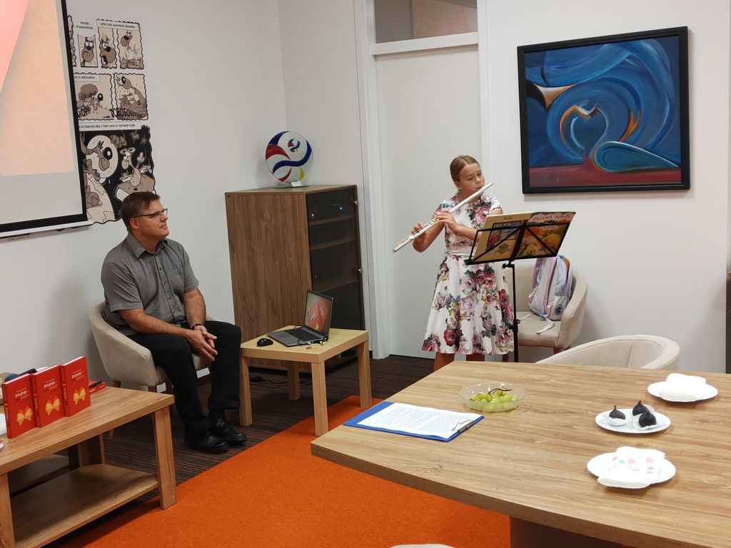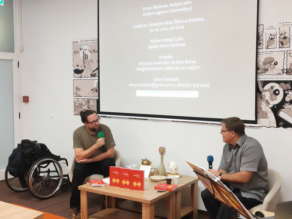 Svoj roman z naslovom Življenje v podzavesti, podnaslov Borec – dnevnik nekega strahopetca nam je v sredo, 25. 9. 2024, zvečer v knjižnici K. Meška predstavil avtor Simon Šerbinek. Simon Šerbinek je dramski igralec in gledališki lektor, včasih tudi šepetalec. Kot zanimivost naj omenimo, da je bil tudi član slovenske reprezentance košarke na vozičkih ter se udeležil petih evropskih prvenstev. V pogovoru z Matijem Štumbergerjem, zaposlenim v Knjižnici K. Meška, sta premlela vse, kar je privedlo do tega romana, tako njegovo vsebino, pomen in vzgibe kakor tudi odzive. V pogovoru z obiskovalci pa se je poglobil v posamezne detajle, dejanja in tudi v življenje invalida na splošno. Prekrasno zvočno kuliso za tak večer je ustvarila Maja Sterle iz Glasbene šole Slovenj Gradec (njena učiteljica je prof. Sonja Lavrinšek).
